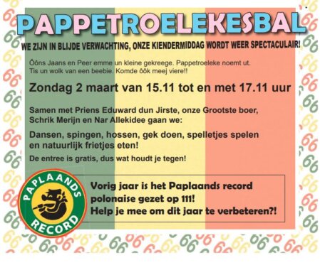 20.11 uur. Feestavond ’66 Jaor Paplaand’ Café/Zalen Donkenhof